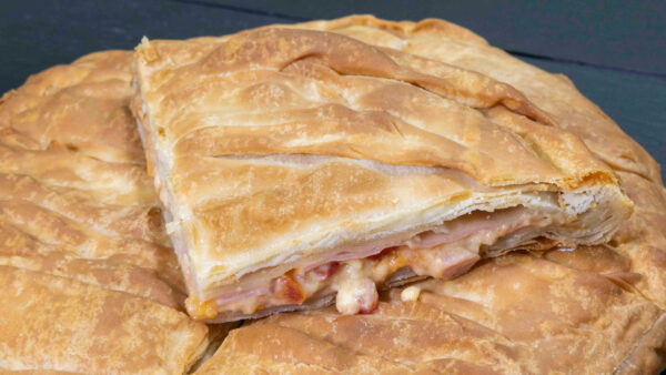 Family pizza with gouda, ham, bacon, tomato, peppers and red sauce. Weight: 1400 gr Case amount: 4 pizza x 8ptn